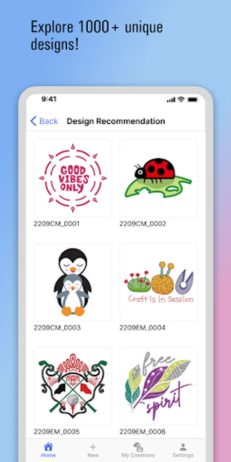 Thousands of embroidery, cutting and printing* designs, ready to make projects, and unique fonts.