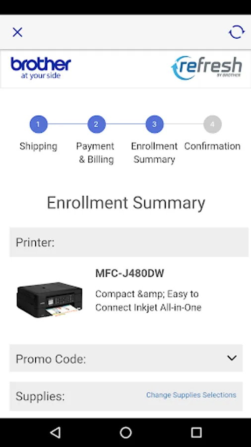 - This app currently supports ink and toner automated replenishment for the following reseller partner programs: Amazon Dash Replenishment, Brother Refresh, Best Buy Easy Replenish™.