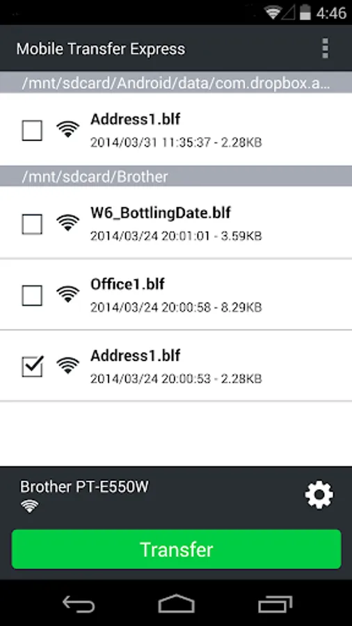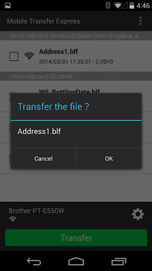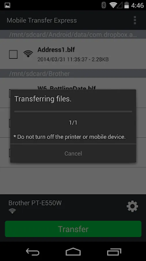 Mobile Transfer Express is an application that allows you to use a mobile device to transfer compatible label templates, databases and images with P-touch Transfer Manager (Windows version) onto a label printer.