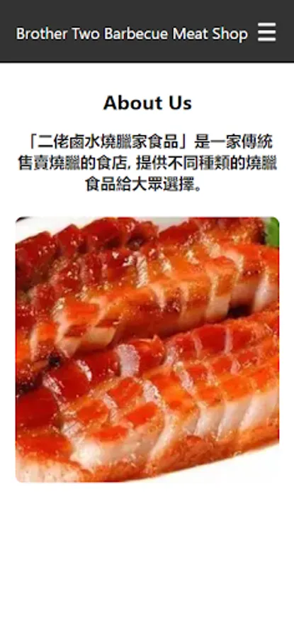 Our goal is to provide you with the best quality service and the most delicious roast meat food. If you are a lover of Hong Kong roast meat, or want to try traditional Hong Kong food, then Brother Two Barbecue Meat Shop's App is the choice you should not miss. Download our app now and start enjoying the delicious journey of Hong Kong Roast Meat!