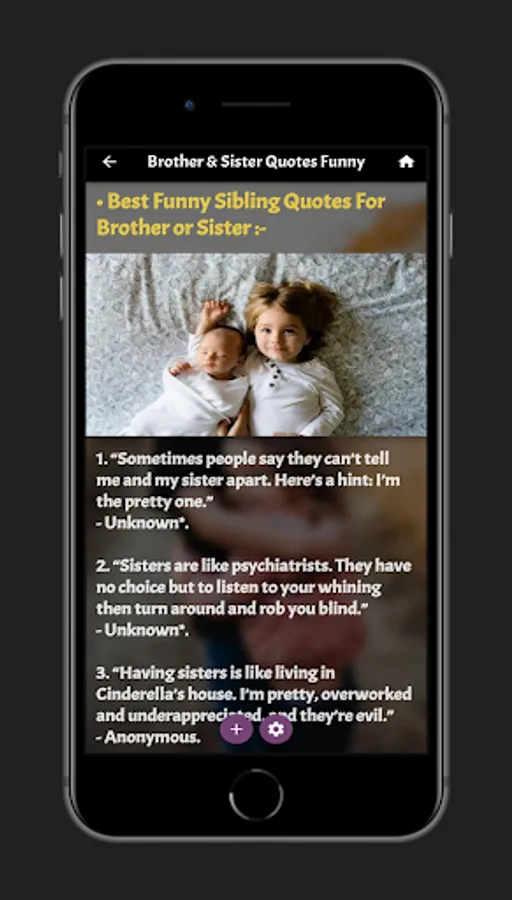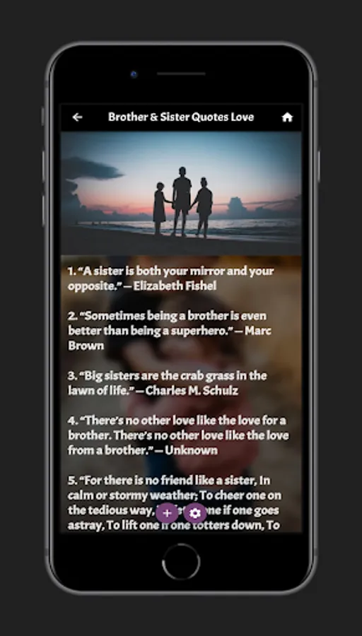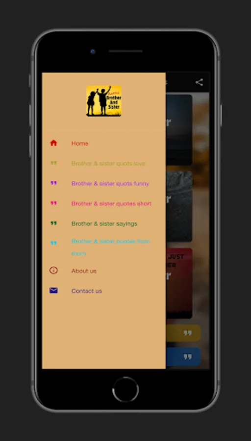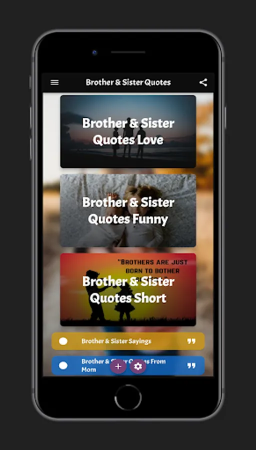 In our application brother and sister quotes we have five amazing section, the first section is about brother and sister, the second section is about brother and sister quotes funny, the third section is about brother and sister quotes short, the fourth sections is brother an sister sayings, the fifth section is about brother and sister quotes from mom