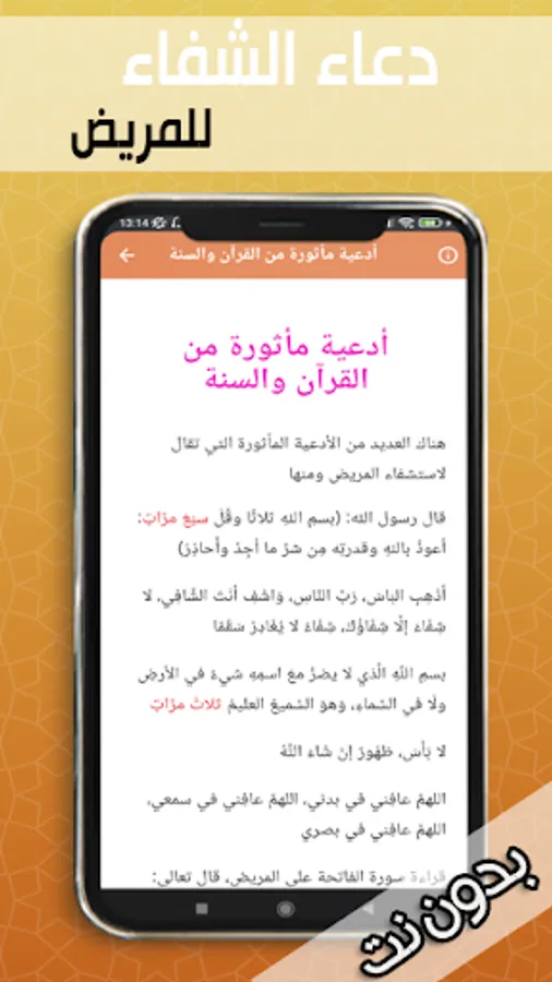 This application also contains a prayer of healing for the patient, written in large font. This application enables you to take advantage of the most wonderful and responsive supplications: