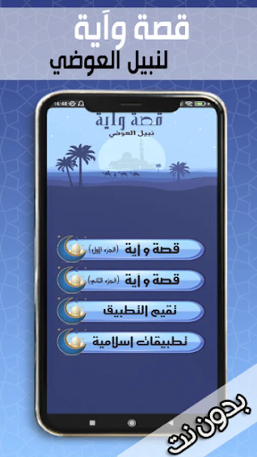Peace be upon you and the mercy of God, today we present to you the application of a story and a verse by Nabil Al-Awadi with a voice - without the Internet. The application is easy to use and the sound quality is excellent