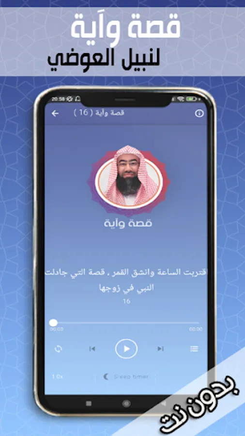 After installing the application with ease from the store, the user will be able to listen to the story and verse of Nabil Al-Awadi without the net anytime and anywhere