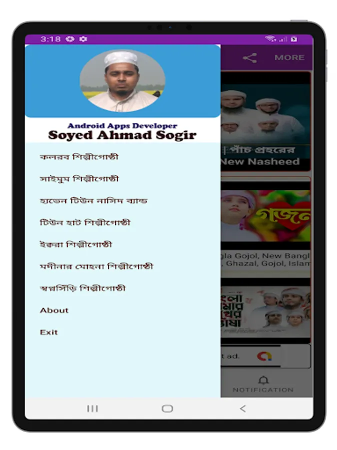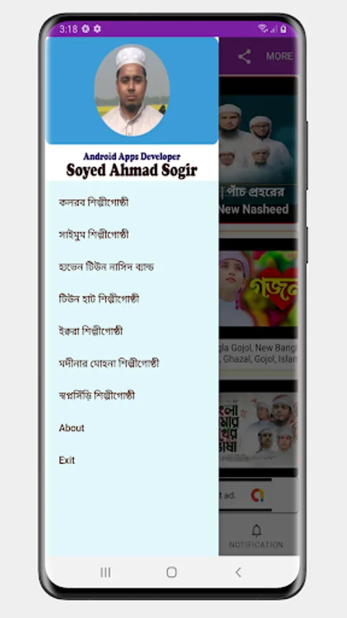 অ্যাপটি জনপ্রিয় বিভিন্ন ধরনের বাংলা শিল্পীগোষ্ঠীদের ইসলামিক গান অফার করে যেমন: