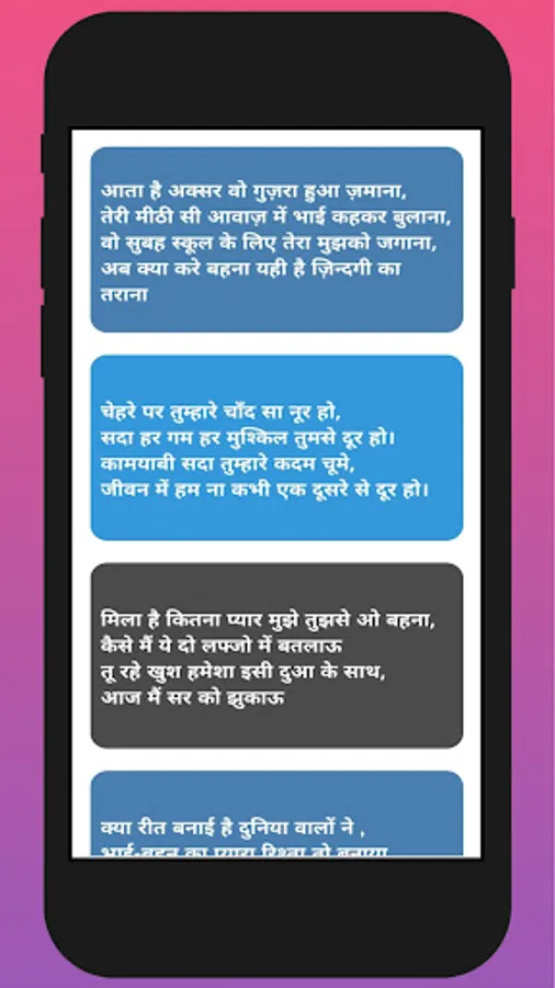 I hope , you will like this Bhai behan Shayari in Hindi App. Send your sister Sister Shayari in Hindi. Friends, you must share these Status Shayari on Facebook and Whatsapp by tagging your Brother And Sister.