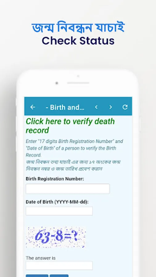 * Jonmo Nibondhon Status - জন্ম নিবন্ধন যাচাই