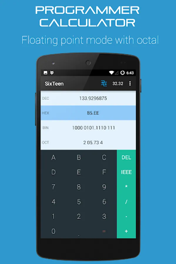 Programmer Calculator is a Beautiful,simple yet powerful application with Hex Dec and Bin numbers displayed simultaneously .