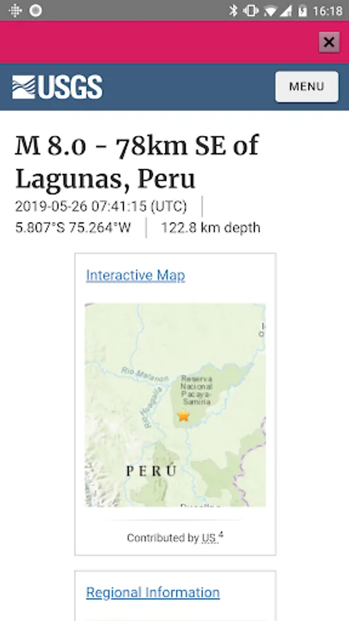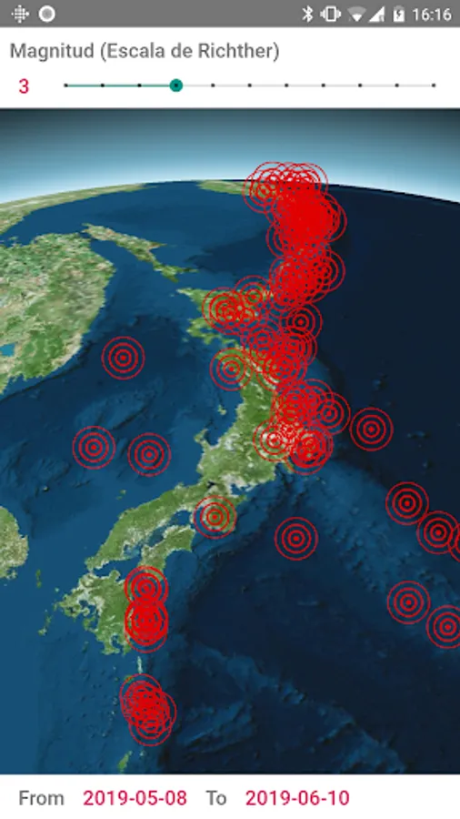 With this application you can look on USGS service and find any earthquake on the whole world on any moment.