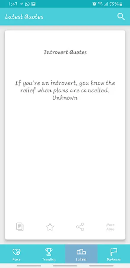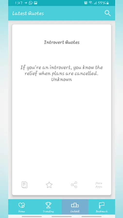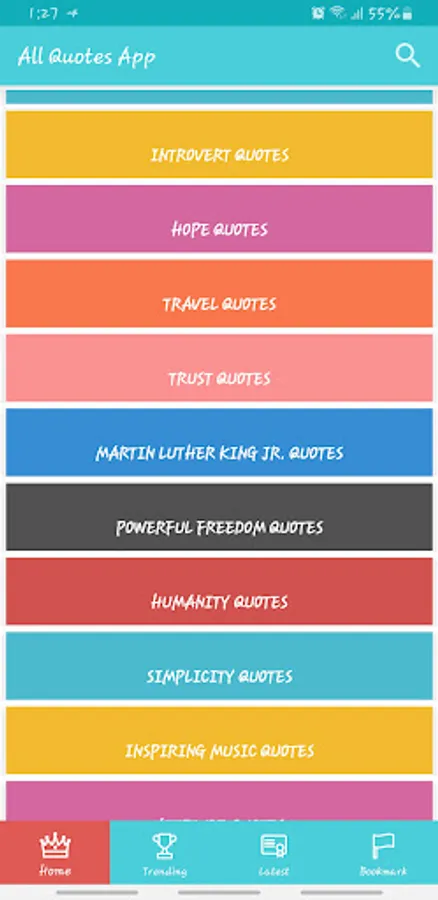 A simple quote app that lists over 20k + quotes from different categories; including happiness quotes, introverts quotes, hope quotes, trust quotes, travel quotes and so much more!!!