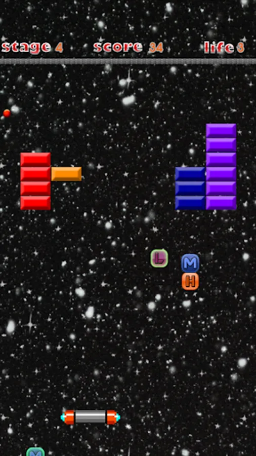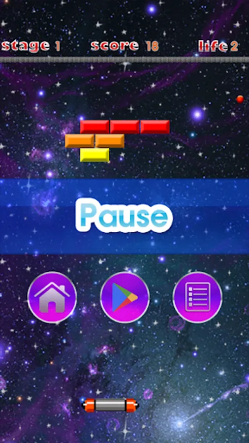 . Game to defeat the bricks can be reflected the ball with a paddle