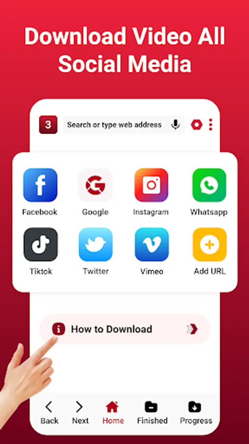 Use the Video Downloader Browser to browse websites and play videos. This intelligent downloader automatically detects videos, allowing you to download them with just one click and complete the download at super-fast speeds. You can also paste the video link into the app to start the download.