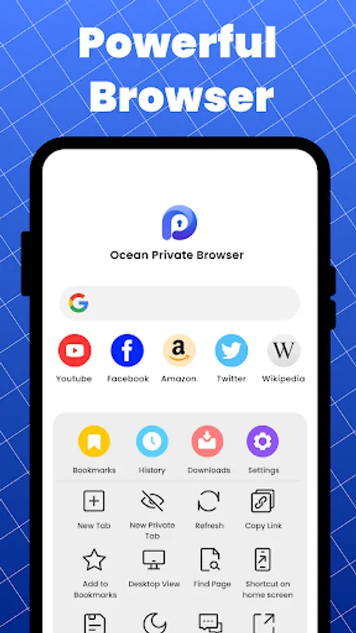 Ocean Browser provides rich browser function settings: built-in multiple search engines, bookmark management, multi tab switching, day and night modes, desktop and mobile browsing modes, download management, desktop shortcuts, etc.