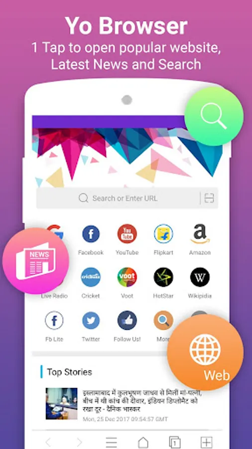 Fully Secure Browser : We give you true freedom to use internet. Yo Web Browser is totally secure and we do not store anything that belongs to you.