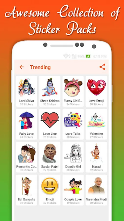 Sticker For WhatsApp app contains almost all categories of stickers and all stickers are wastickerapps compatible which you can share on whatsapp easily.