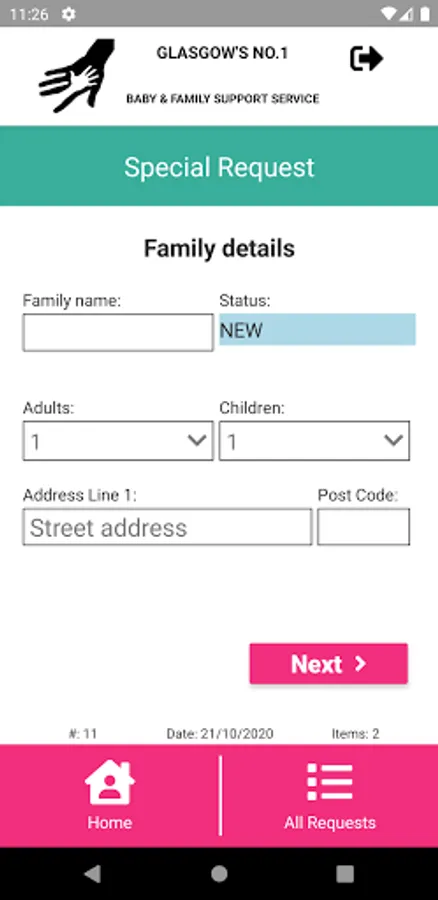 Glasgow No.1 Baby & Family Support Service app helps all our agency partners quickly request support directly from Glasgow No.1 Baby & Family Support Service.