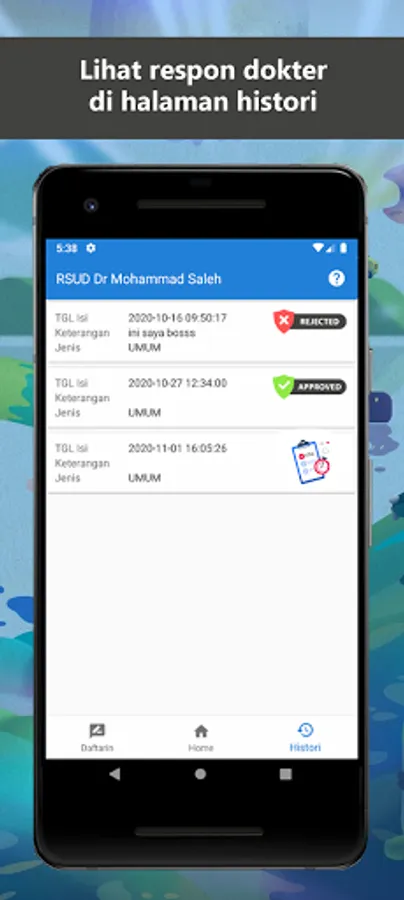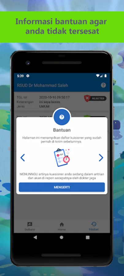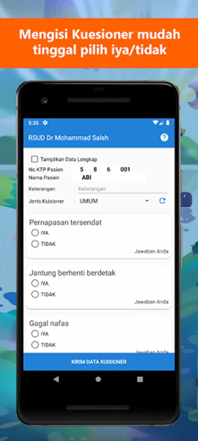 This application aims to help users / patients so that they can immediately consult a cardiologist at the dr. mohamman saleh hospital, probolinggo city. Where the user/patient must fill out a questionnaire first which will send the results of the questionnaire to the relevant doctor, after the questionnaire is received by the doctor, the doctor will provide a response which will be received by the patient.