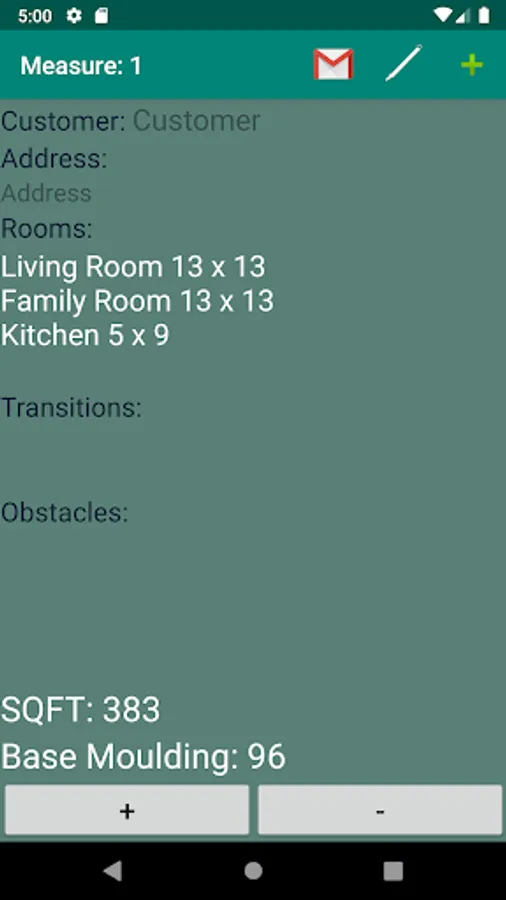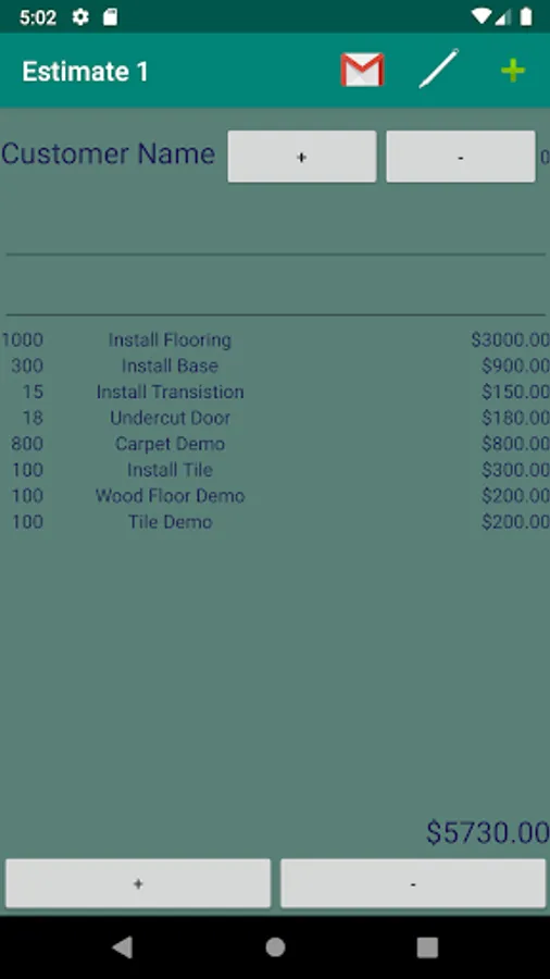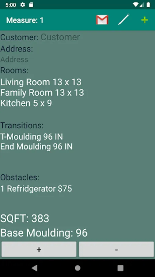 Create a Flooring Estimate,Invoice, and Measure that can be sent by email directly from app. Save your customers and their email, phone numbers, and addresses. Save Flooring Measures room by room and save Total Base Moulding, obstacles, transistions and Address for your measure. Save your prices for each item on Flooring Estimate, Invoice. Enter your Company Name, Number, and Email and will be added to the Email. This is great for sending a Tile, Wood Floor, or Laminate Flooring estimate on the go.