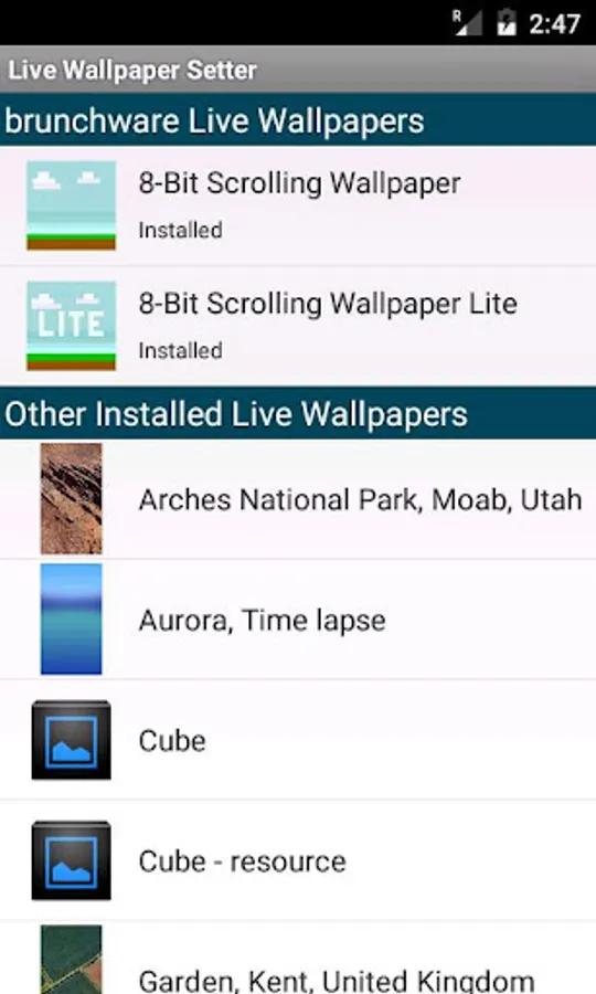 Live Wallpaper Setter is a simple app that allows you to set your background to a live wallpaper that is available on your device. No more scratching your head trying to figure out how to get your Android device to display the live wallpapers you've downloaded. Simply get this app and you will soon be able to set your live wallpapers with the touch of a button!