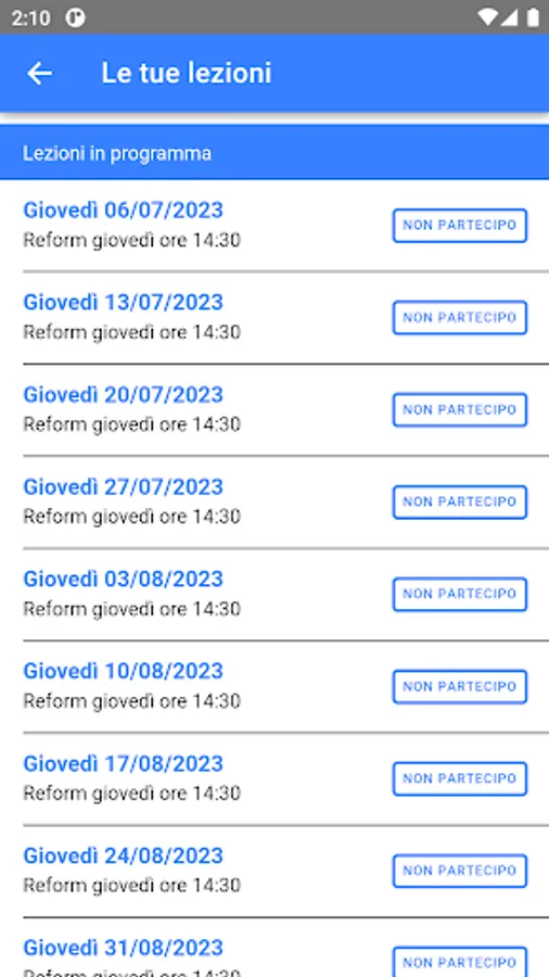 Through the app you can view your lessons and independently choose the recovery of missed lessons.