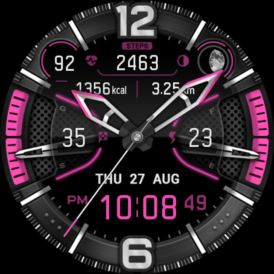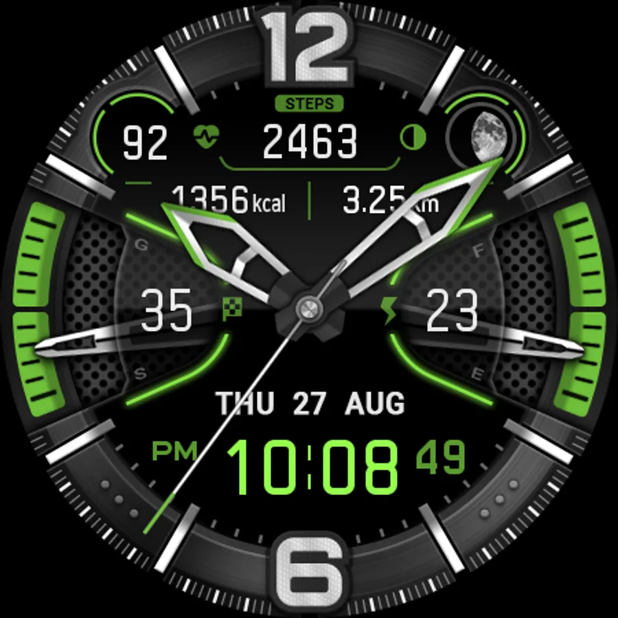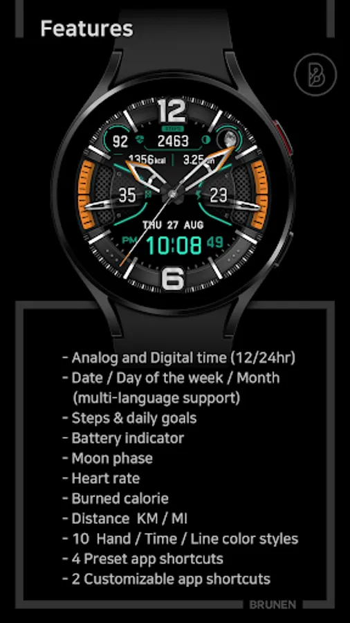 This watch face was designed with Watch Face Studio and the Galaxy Watch 4 was used as a test device.