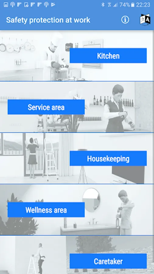 This app informs about the workplace risks. It shows, trough meaningful pictures and video clips, the sources of danger in work areas such as kitchen, service, floor, wellness as well as caretaker activities in hotels, restaurants and bars. It is aimed at convincing workers and employers to make greater efforts to achieve safety on the workplace prevent work-related accidents and to protect their health, even in future.