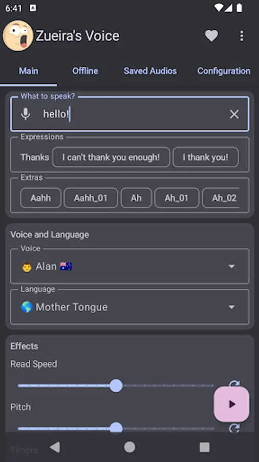 Bid farewell to the TTS Reader impediments! Make communication smoother, simpler and easier with this appealing voice narrator app. Whether you are looking for accurate voice to audio conversions or you want a text to voice narrator to help you with dictation, or even to make some memes or voiceover with the voice of Daniel, this TTS Reader is here for you. On top of that, you can also use this text reader for saving the drafts and reading them later. The app offers narration TTS mode and you can also switch between light or dark mode.