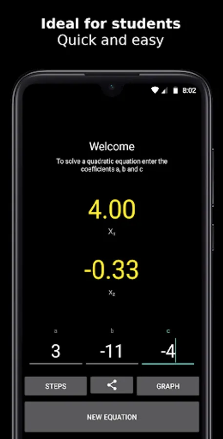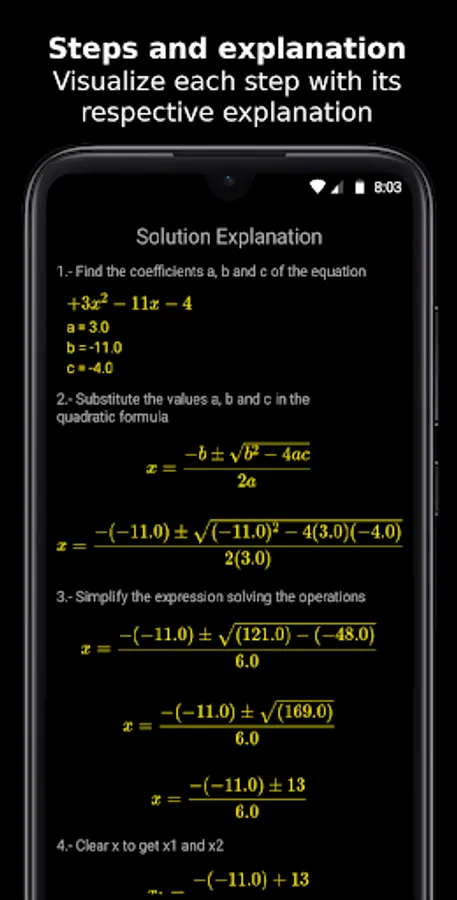 . Second degree equation solution