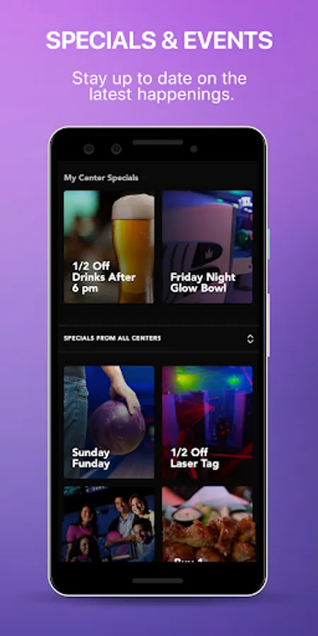 We value your time and money, and think you deserve to be rewarded for spending both with us. Every activity you participate in and dollar you spend can earn you reward points to be redeem for food, beverages, bowling and more. Let’s keep the fun rolling! (availability is center specific)