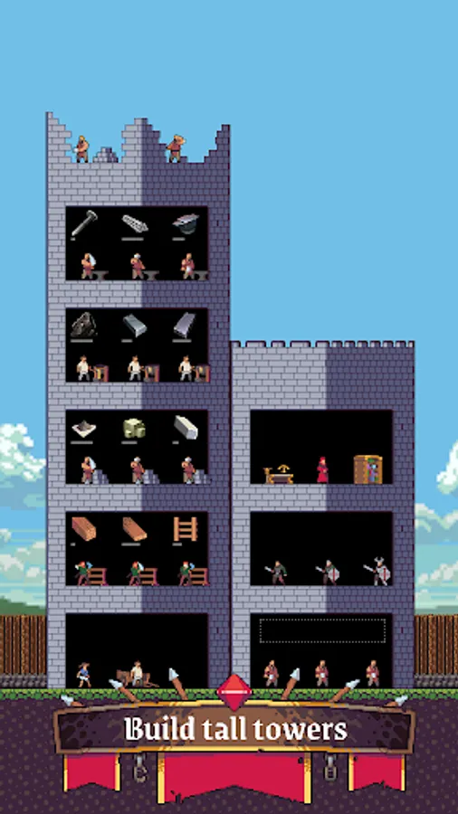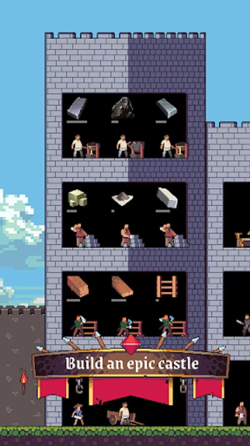 • Build up your castle blocks, add floors, set up new workshops 🏗️