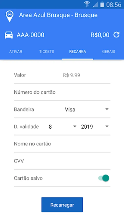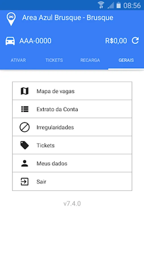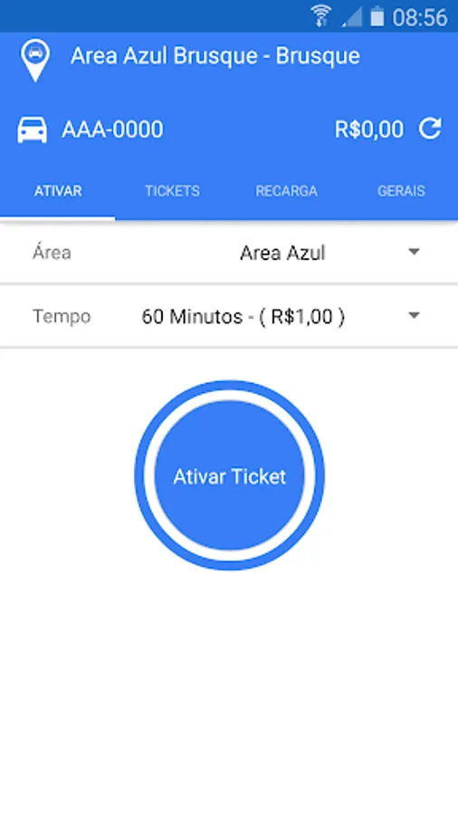 The Blue Area app can be used in the public rotating parking of Brusque. The app allows: