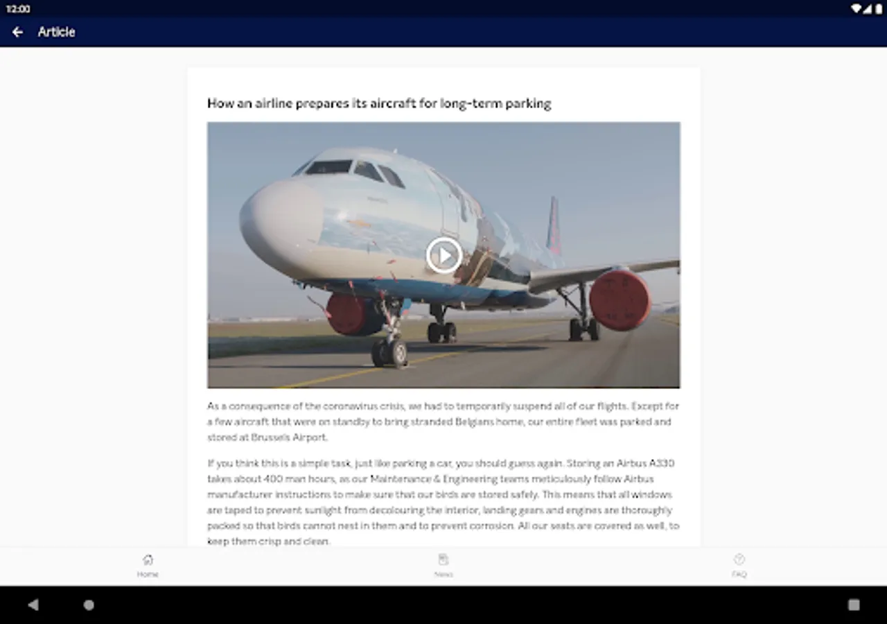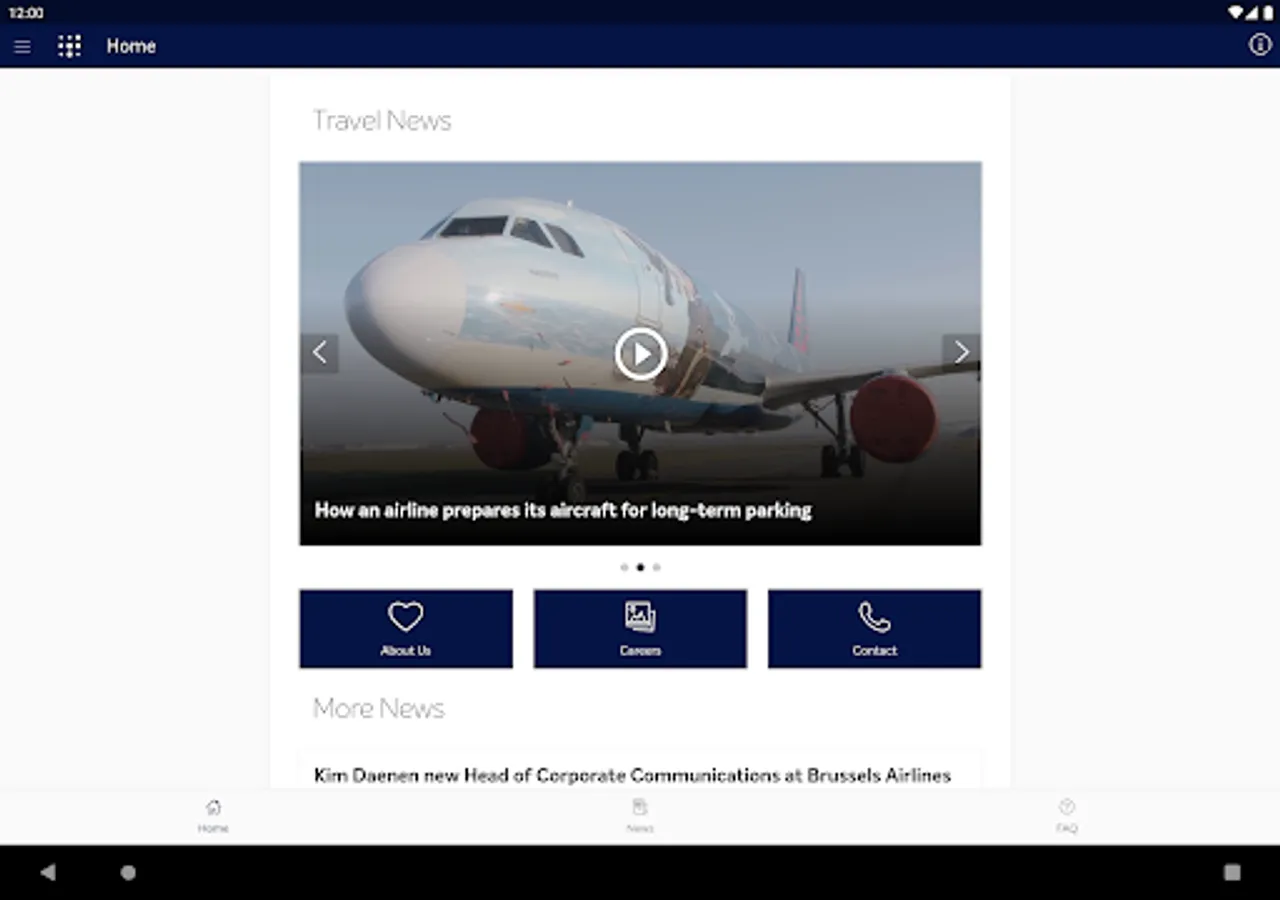 Through this app, you can discover everything there is to know about Brussels Airlines, including the latest news and press releases published by Brussels Airlines. Employees, partners and customers can find your way to our job vacancies, the location of our headquarters, our booking engine and contact details. Take a look behind the scenes of aviation, thanks to our "making-off" and "did you know" video's and get to know everything about Belgium's national airline company. Activate the push notifications to stay up to date, wherever you are.