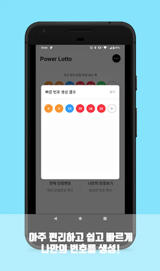 This week provides you with all the features you need to enjoy the lottery lottery, such as making an expected number, saving your own lottery numbers and checking the winnings.