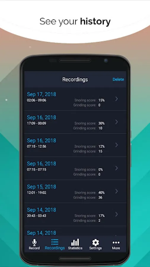 This app will record snoring and grinding sounds made during your sleep, you can listen to them the next morning.
