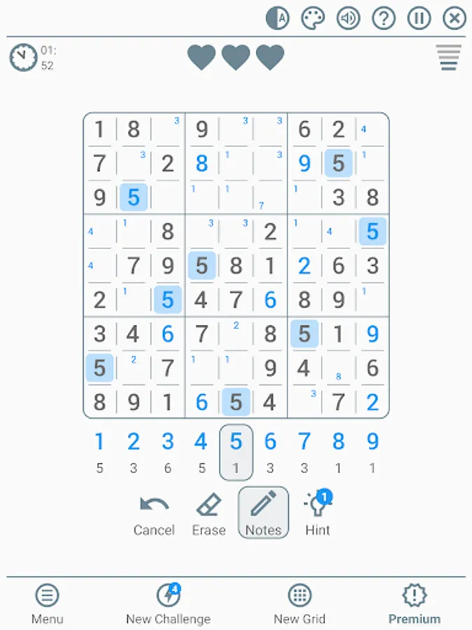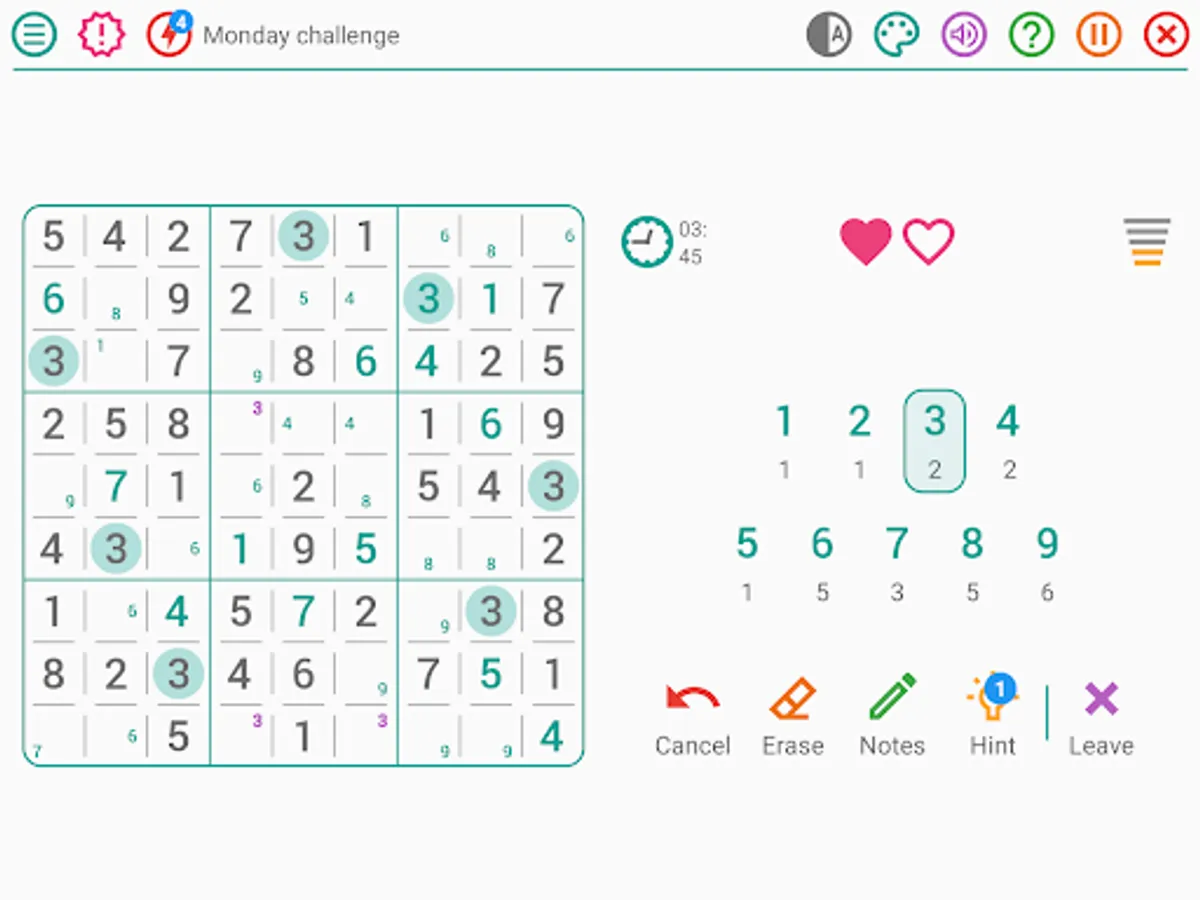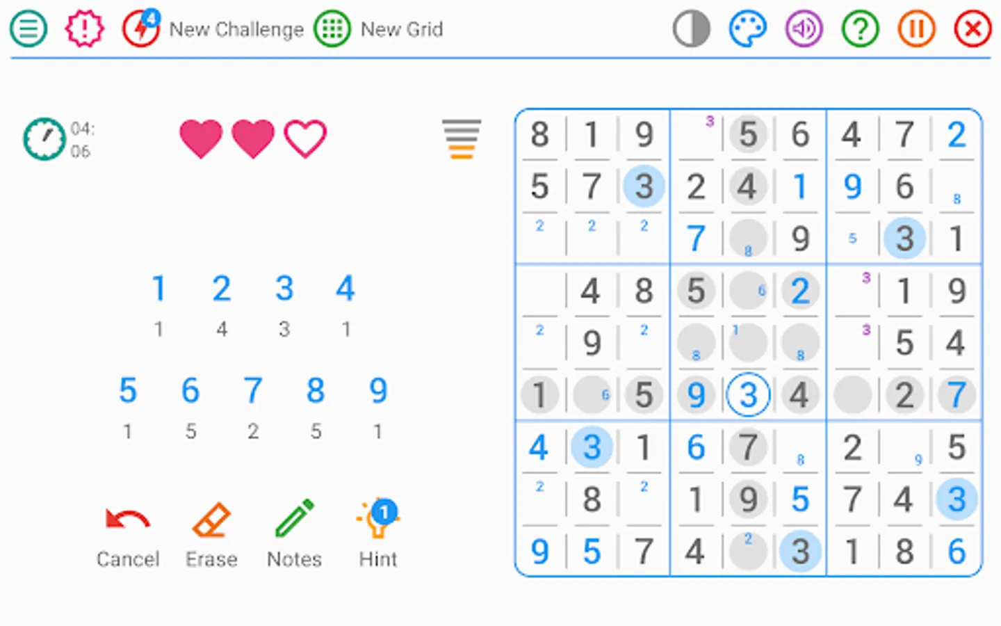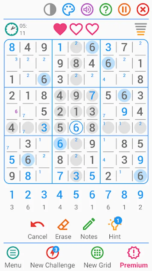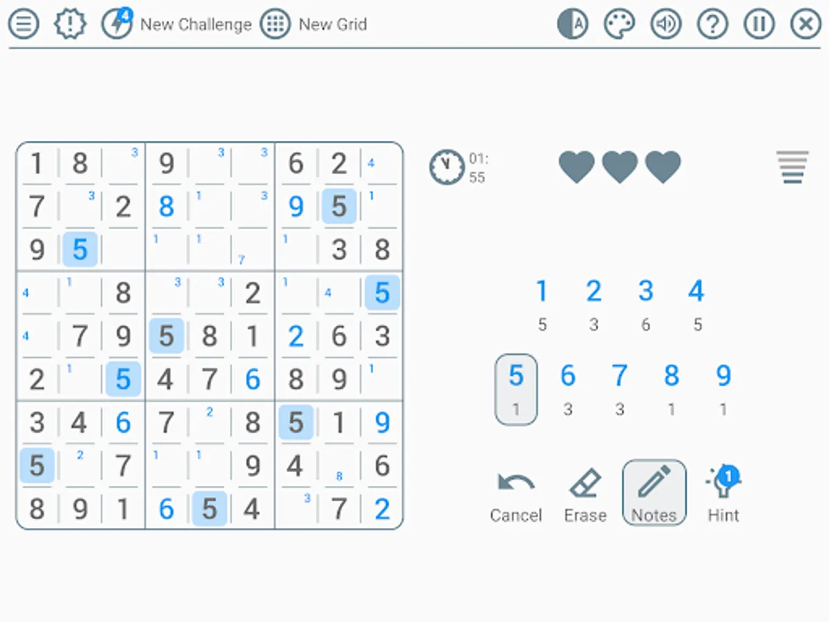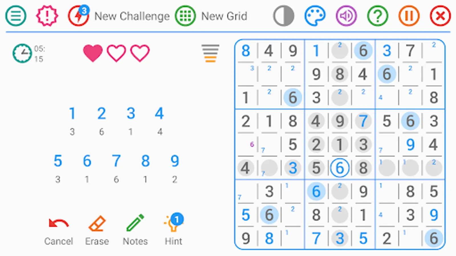 By displaying errors, the number of digits remaining and boxes of the same value.