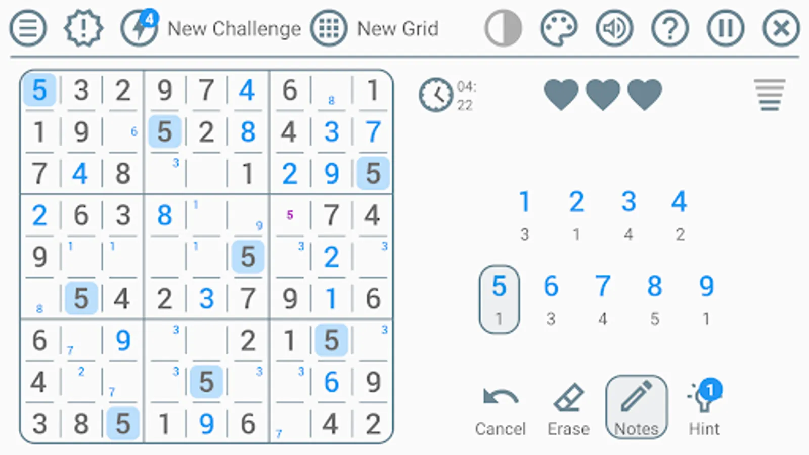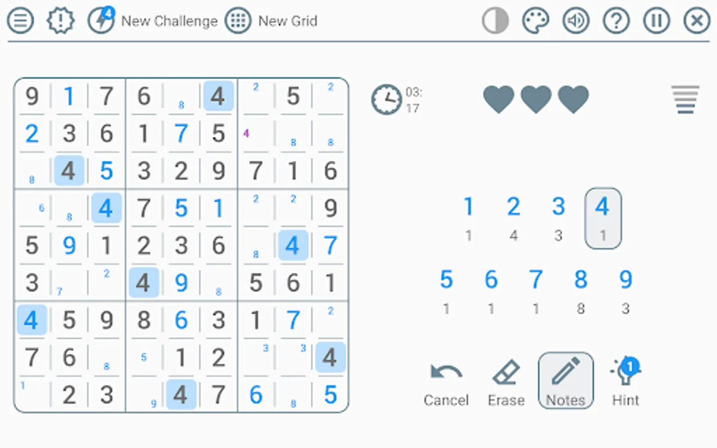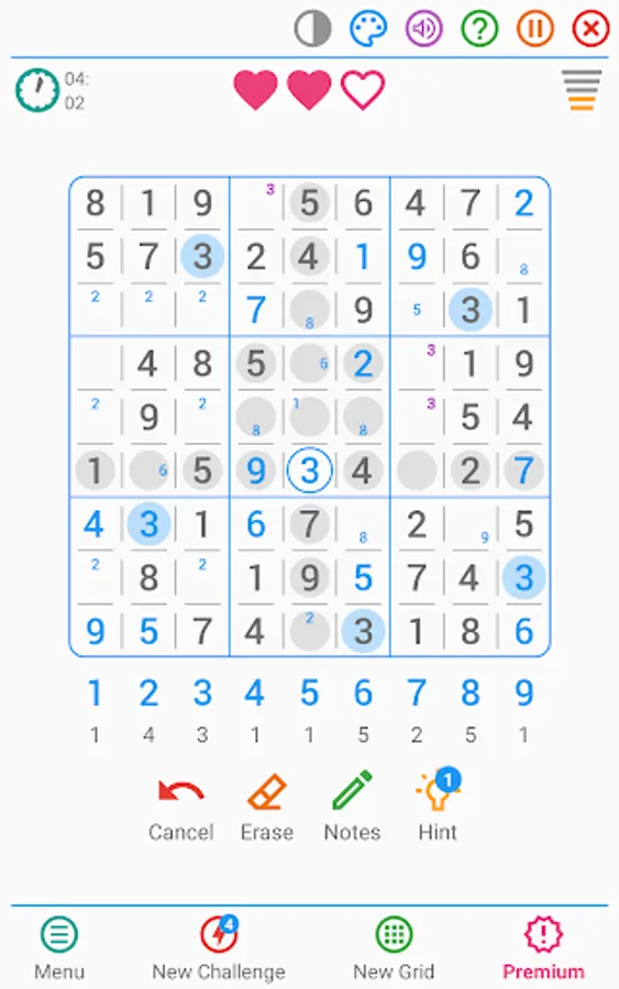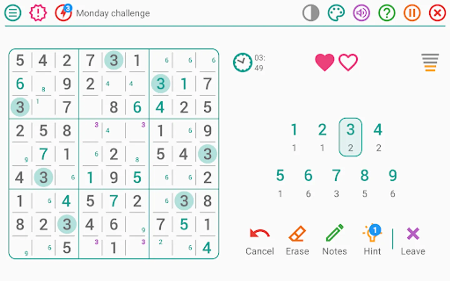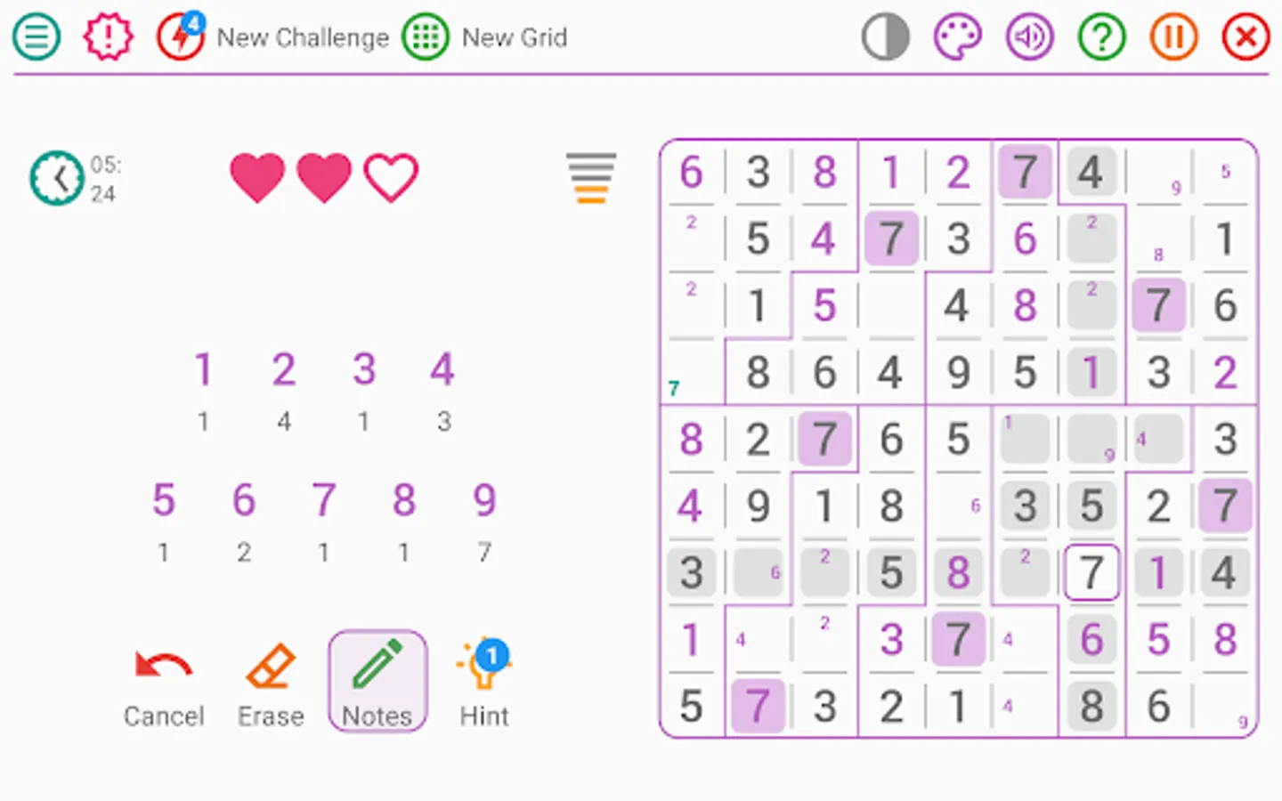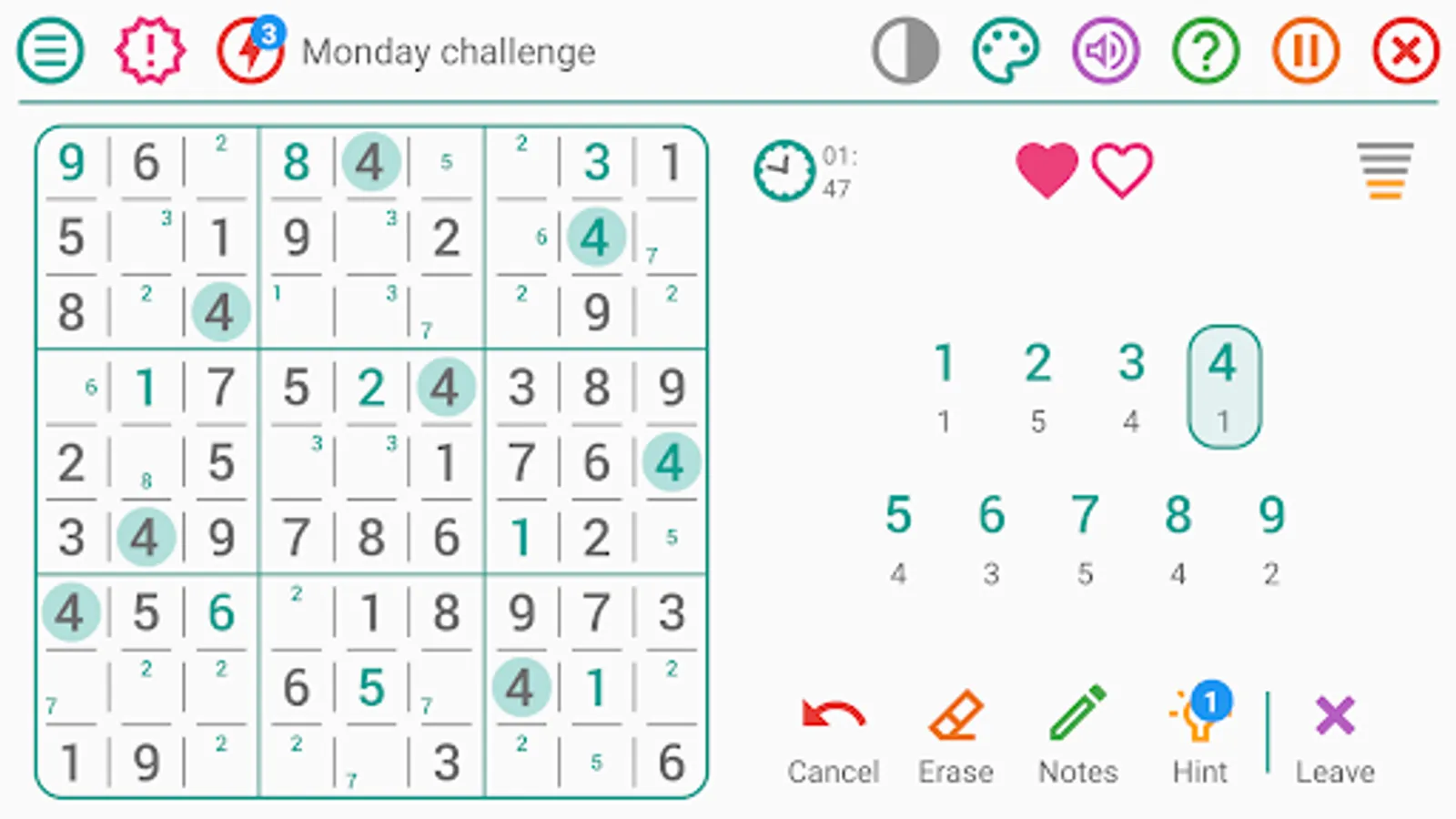 By displaying errors, the number of digits remaining and boxes of the same value.