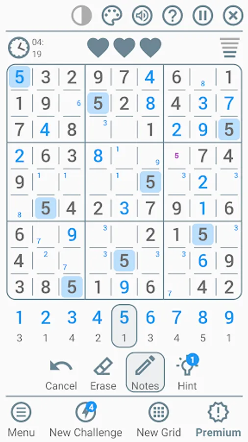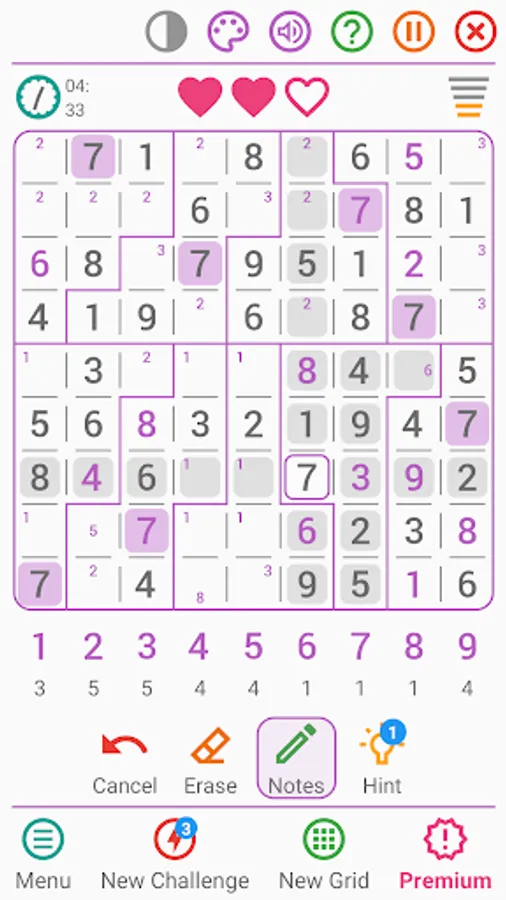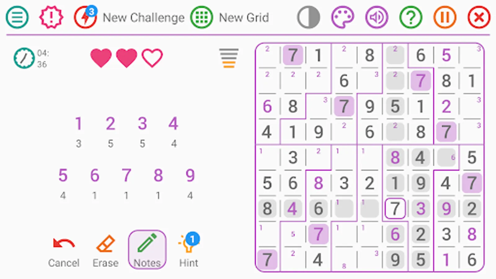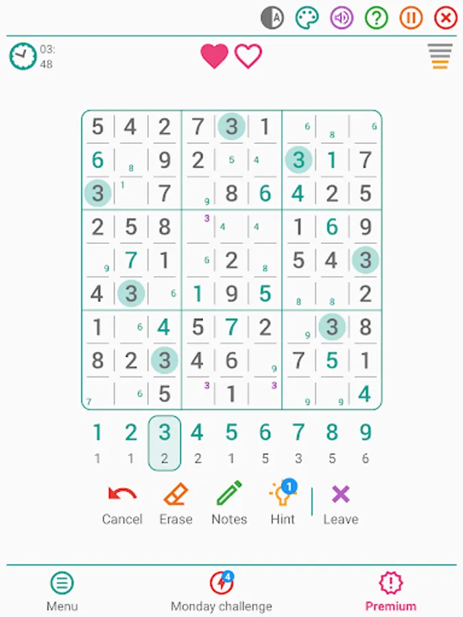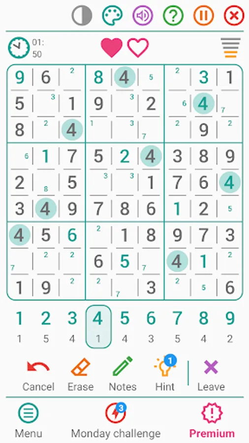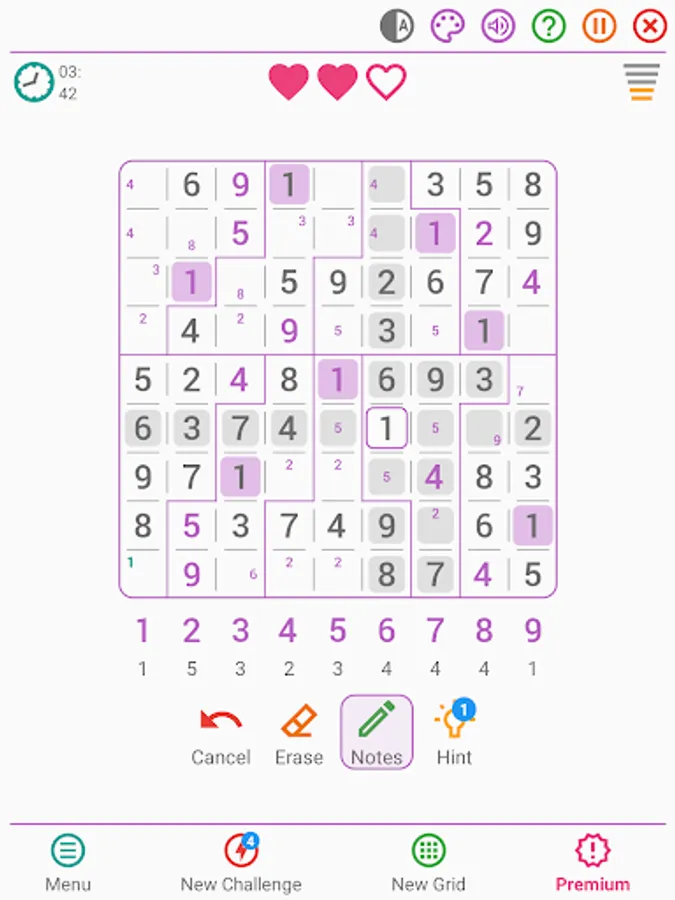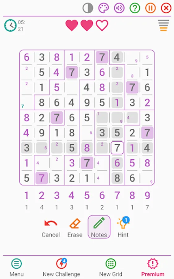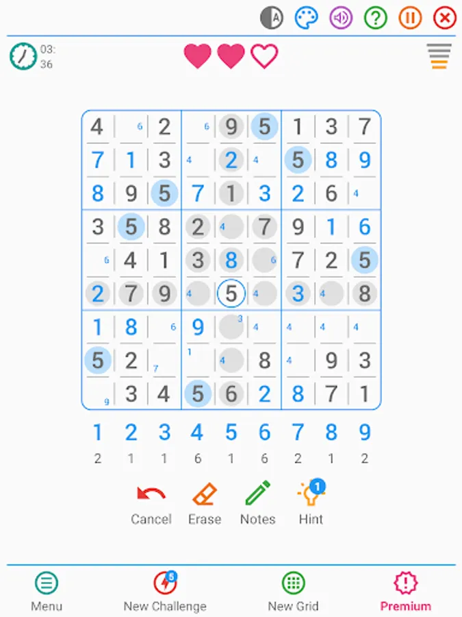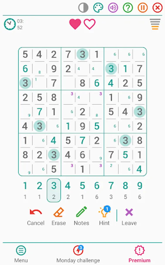 By displaying errors, the number of digits remaining and boxes of the same value.