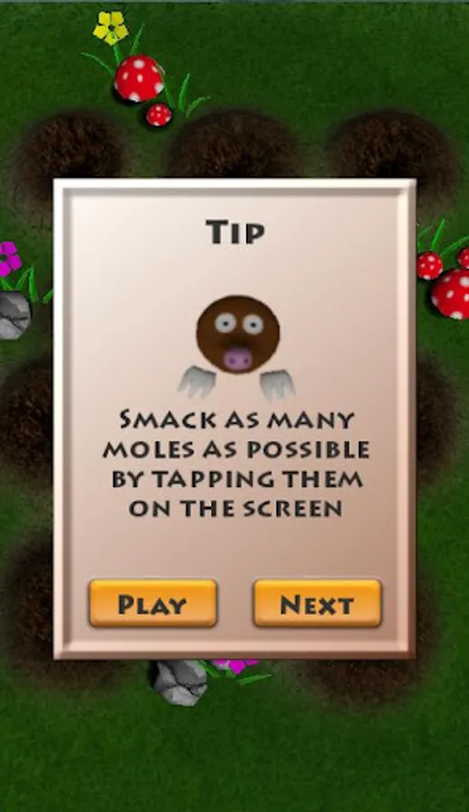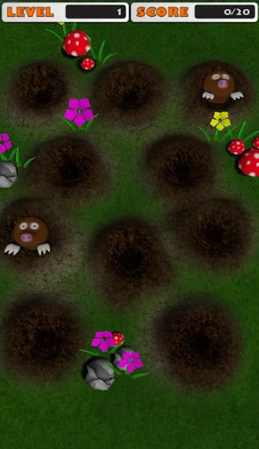Tap a mole is an arcade/action game where you must tap the moles back into their holes when they pop out.