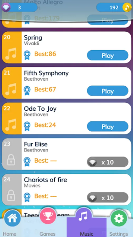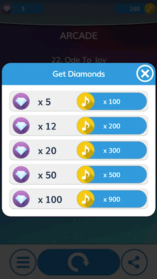 - Use the music notes to get DIAMONDS and then unlock new songs with the diamonds.