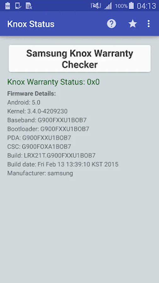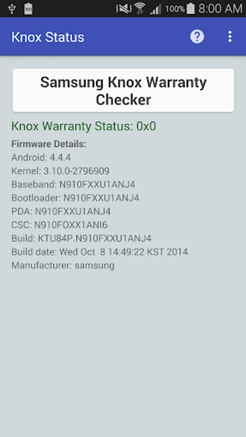 If you have any issues with this app, please e-mail me before leaving a bad rating. My goal is for it to be as accurate and reliable as possible on all Knox-equipped Samsung devices.