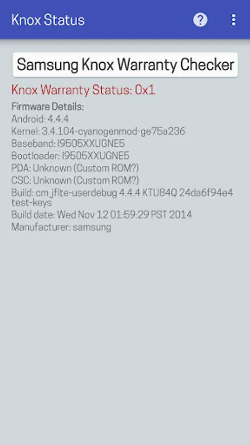 NOTE: IT IS NOT POSSIBLE TO CHANGE KNOX VOID STATUS! Please do not download this app expecting to change your warranty status. That is not the app's function, nor is it possible.