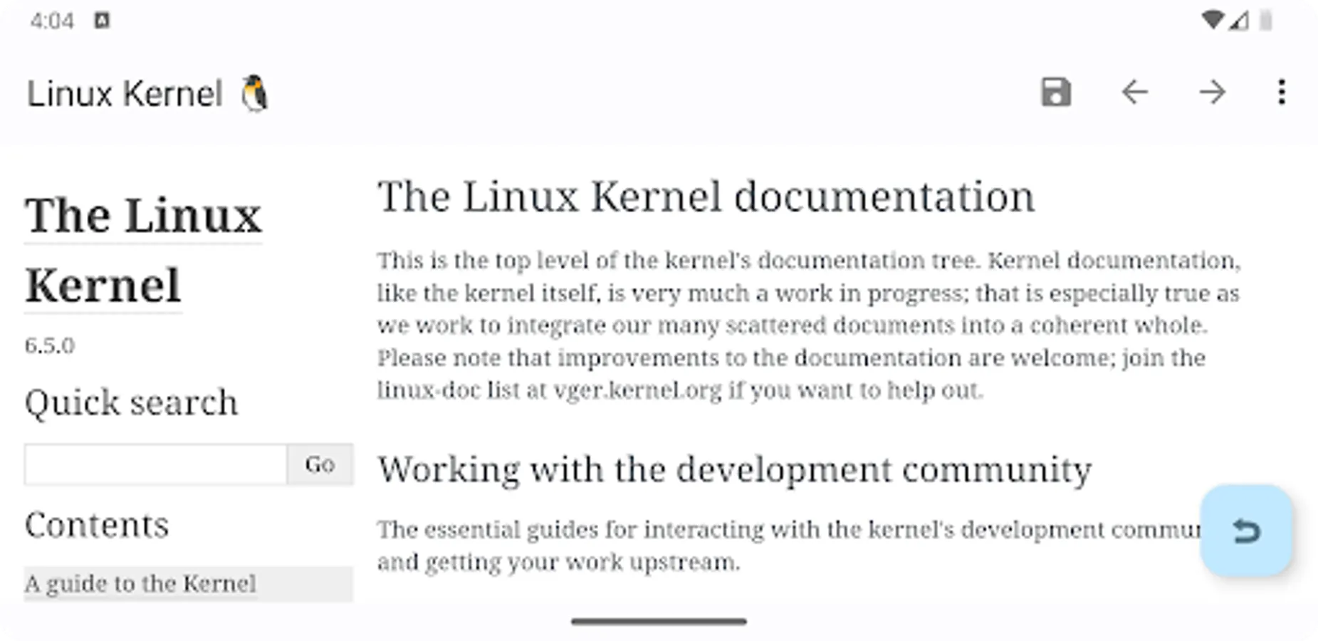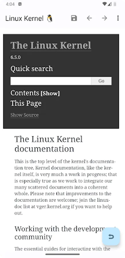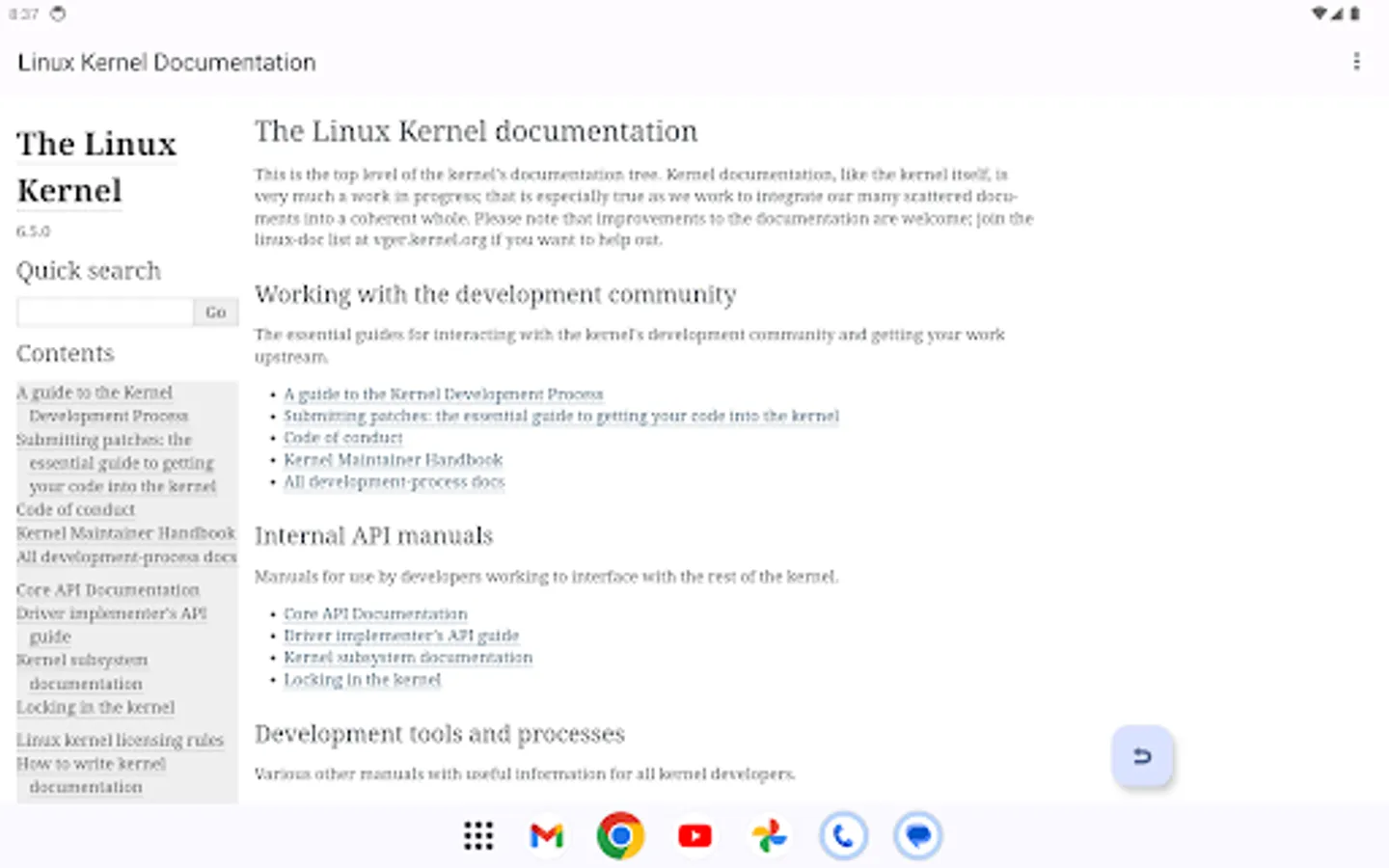 This is the complete Linux Kernel documentation stored locally on your device so that no internet connection is required to access it.