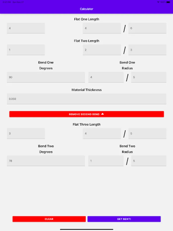 Stop wasting time with all those charts and math! Let this app do it for you. Just punch in the flat lengths, bend degrees and radius and BAM you will know precisely when to bend and how much material you need. Too easy!