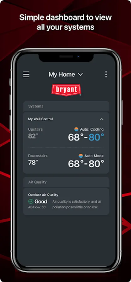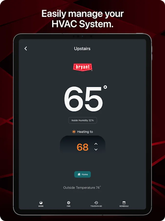 The new Bryant Home app features a contemporary look and feel that allows homeowners to control their Bryant Evolution system remotely.