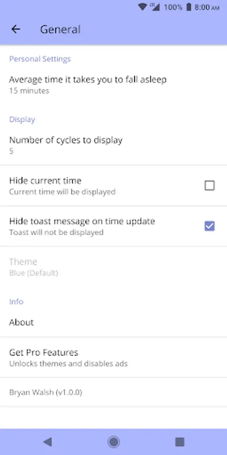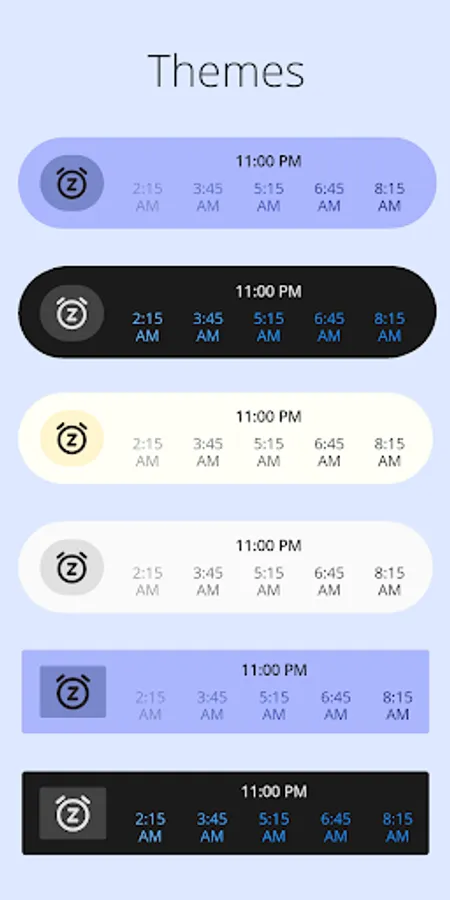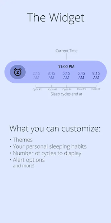 This widget calculates the best times for you to wake up, without the need of heavy features like other apps on the Play Store. Whether you want to nap or feel well rested for the next day, this widget will tell you when each of your sleep cycles end to determine the optimal time to set your alarms with simplicity and elegance.