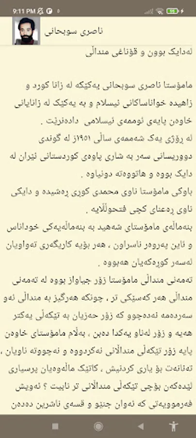 ، درود و سڵاو لەسەر گیانی پاکی سەروەری جیهانیان و بەندەی خۆشەویستی خودا محمد درودی خودای لێبێت ، لەم بەرهەمە بچووکەدا دەمانەوێت ئاشناتان بکەین بە زانا و موجتەهید و خوداناسێکی ئیسلامی کە ژیانی خۆی بە پەروەردگاری فرۆشت و بەردەوام لە خزمەت پەیامەکەیدا کاری دەکرد و هەر لەو پێناوەشدا گیانی پیرۆزی Bakhshi, Ayweesh Mamۆsta Nasiri Subhaniya.
