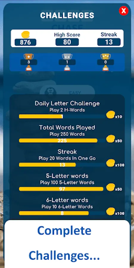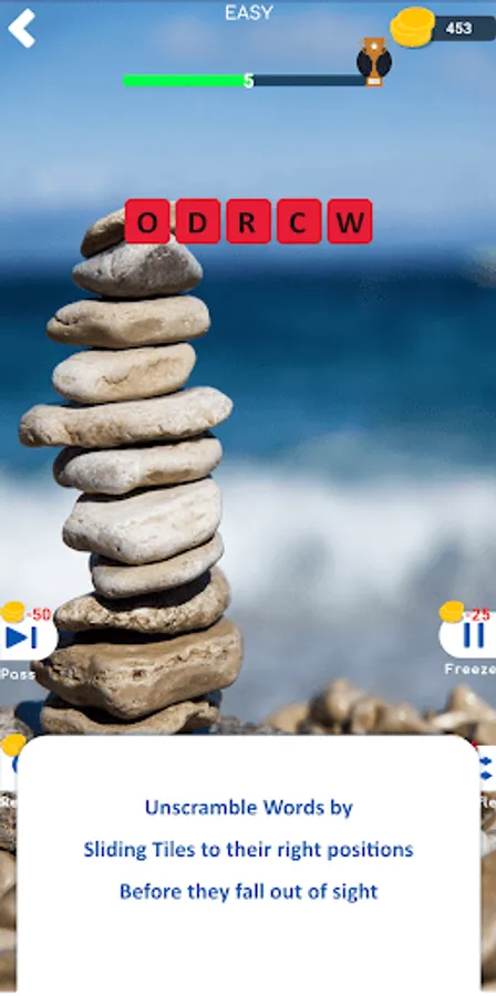 Word Chase is a fun original word game that tests your puzzle-solving skills and vocabulary. All you have to do is unscramble some tiles to make a valid word before they leave the screen. Time is not on your side! Are you ready for the challenge?
