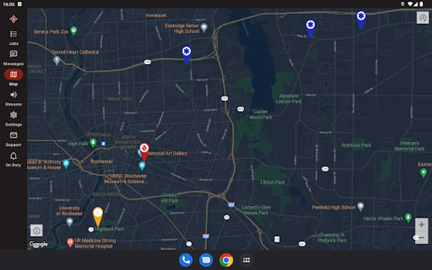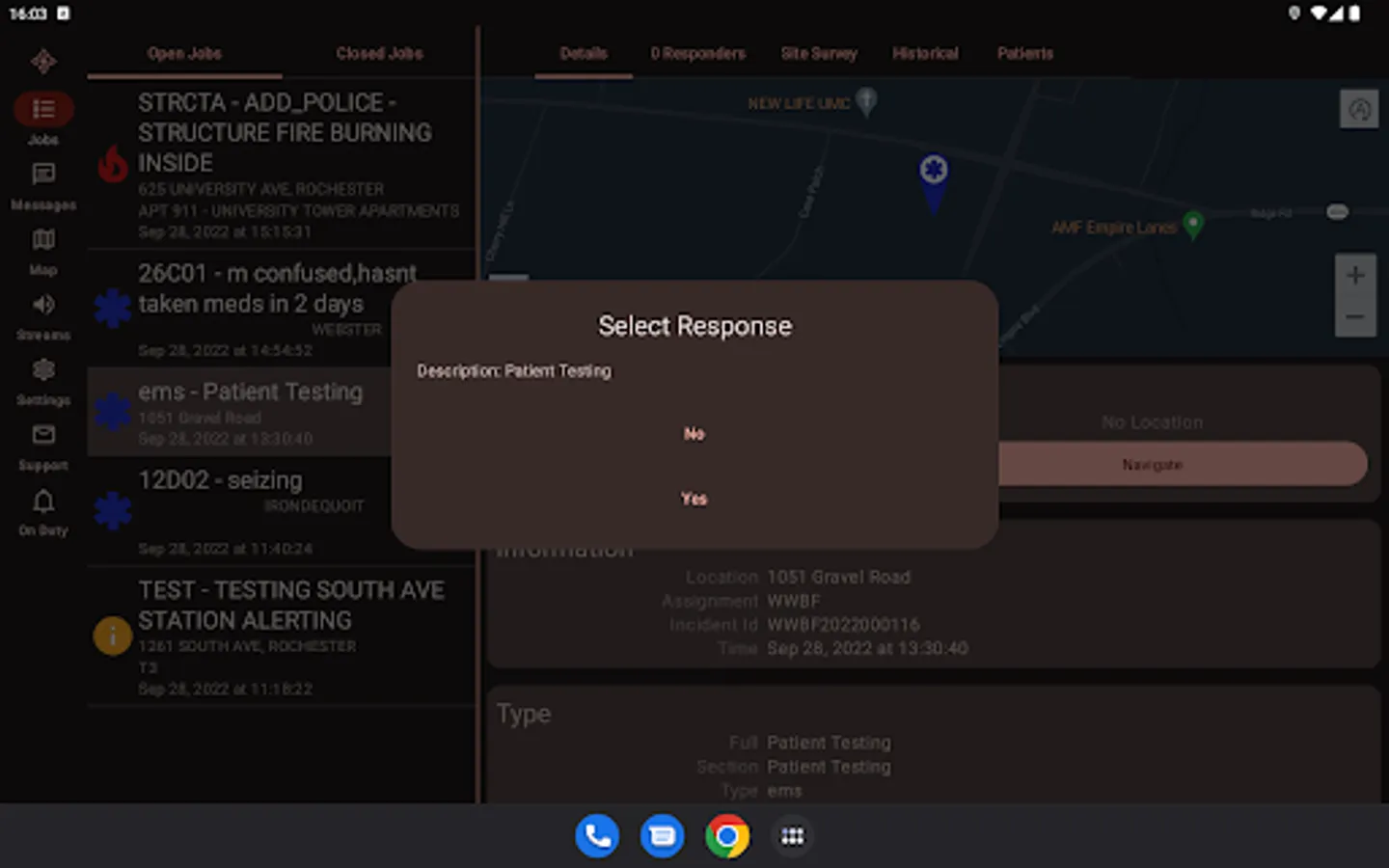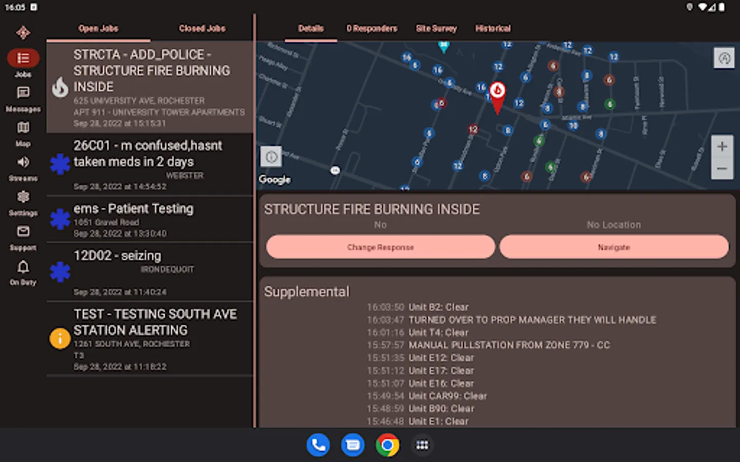 -View the exact job location within your district and a highlighted route from your station to the scene.