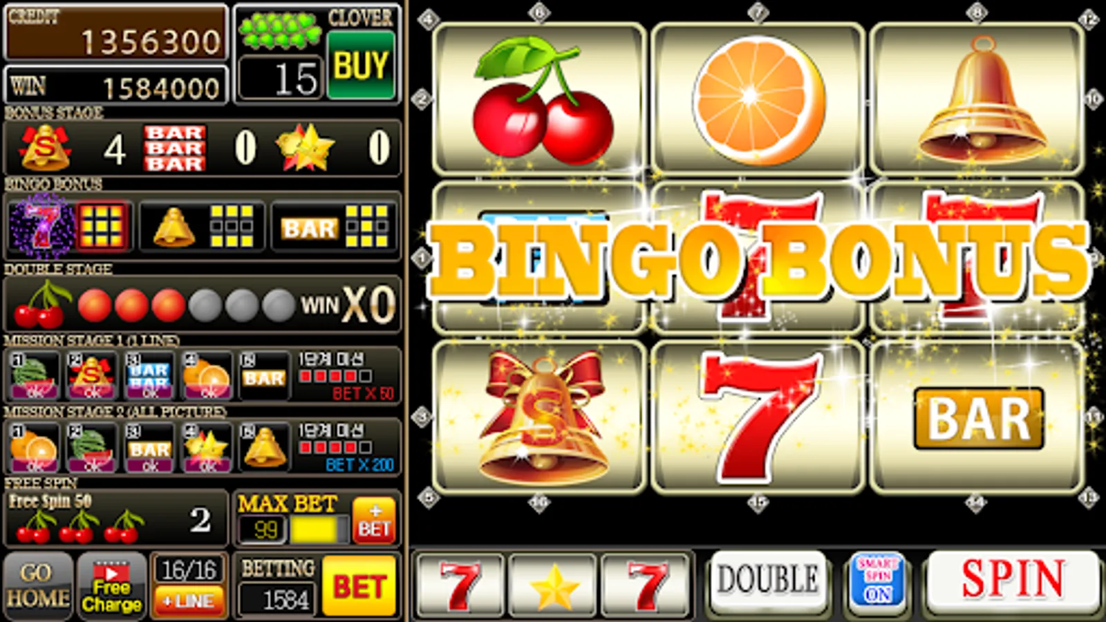 : When bingo is completed, clover is provided.