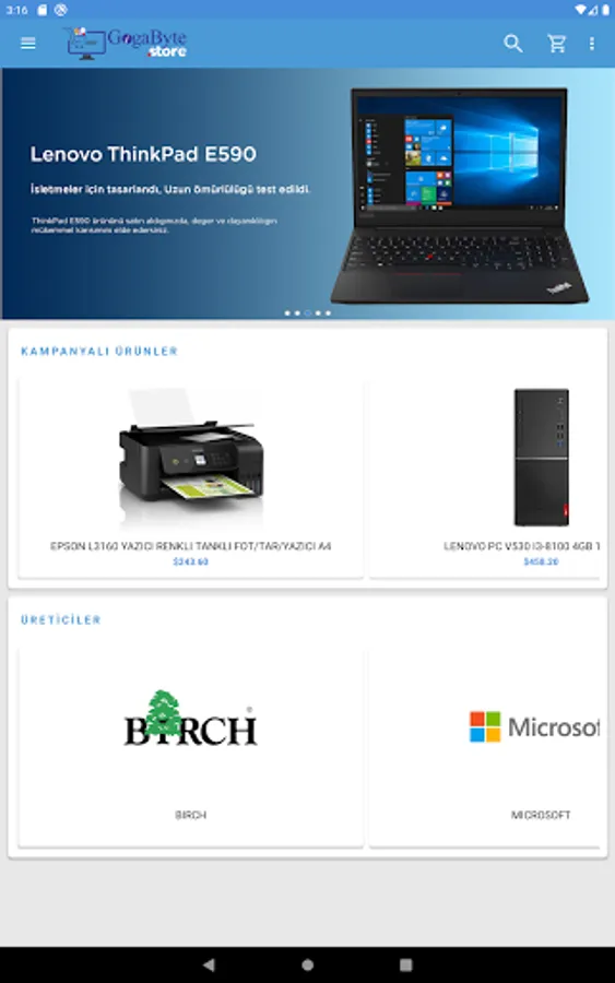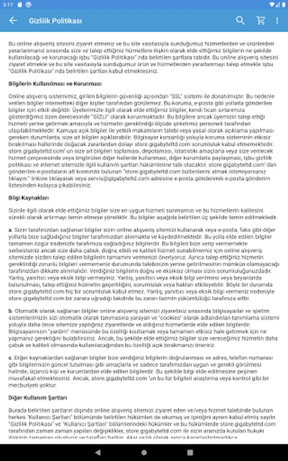 Gigabyte Ltd Store Alışveriş Web Uygulaması iOS Android ve Web üzerinden ulaşılabilen, Kuzey Kıbrıs ta faaliyetlerine devam etmekte olan Gigabyte Ltd in bir mağazacılık uygulamasıdır. Uygulama ile mağaza müşterilerine, mobil cihazlar üzerinden online alışveriş yapma imkanı sağlamaktadır.